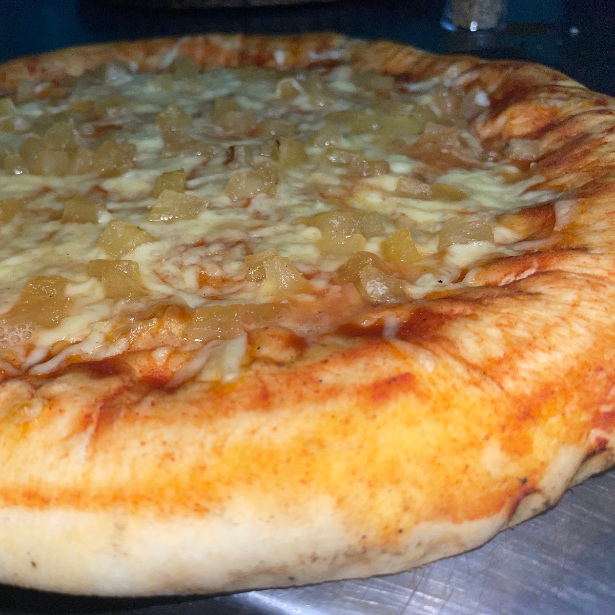 Pizza circular de 30 cm de Diámetro con sus bordes rellenos con una ración extra de Queso Blanco