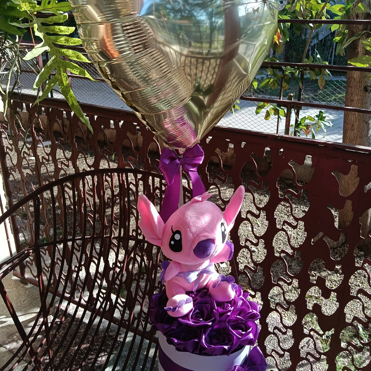 Bouquet de 12 rosas eternas con globo y peluche