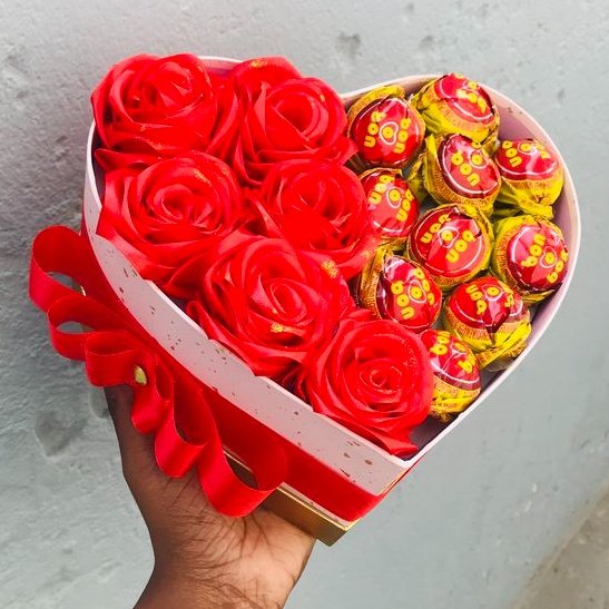 Caja corazón con 6 rosas eternas y bombones - Imagen principal