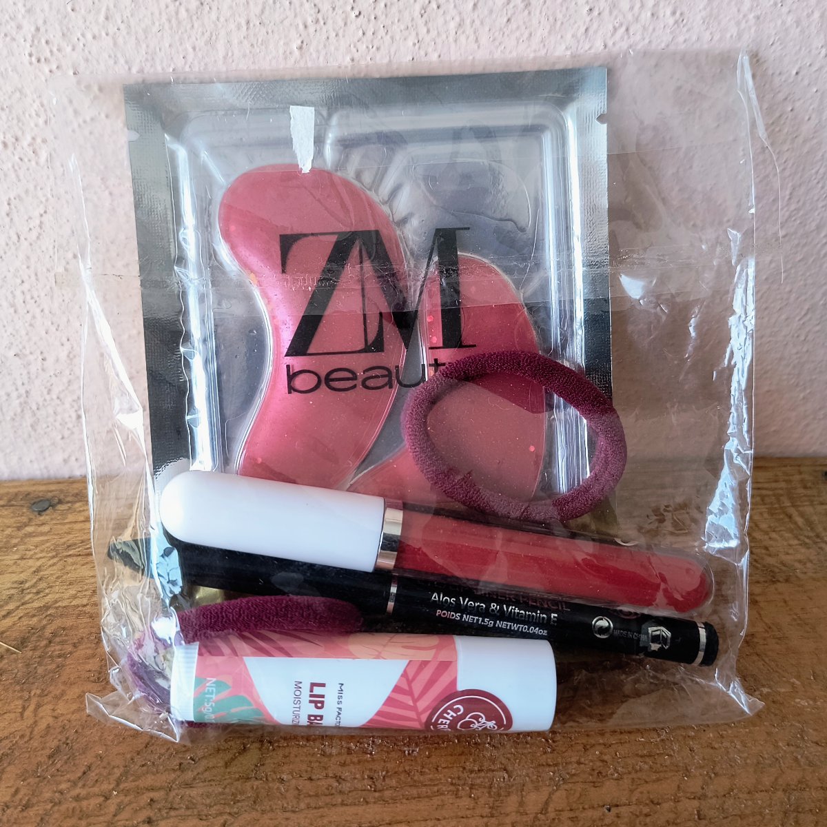 Este combo cuenta con: parche de gel con colágeno para las ojeras, labial mate CAMADU, juego de felpas finas para el cabello, delineador de párpado inferior negro y bálsamo labial de frutas. Puedes encontrar estos mismo productos por individual en nuestra tienda y ver sus características y propiedades.