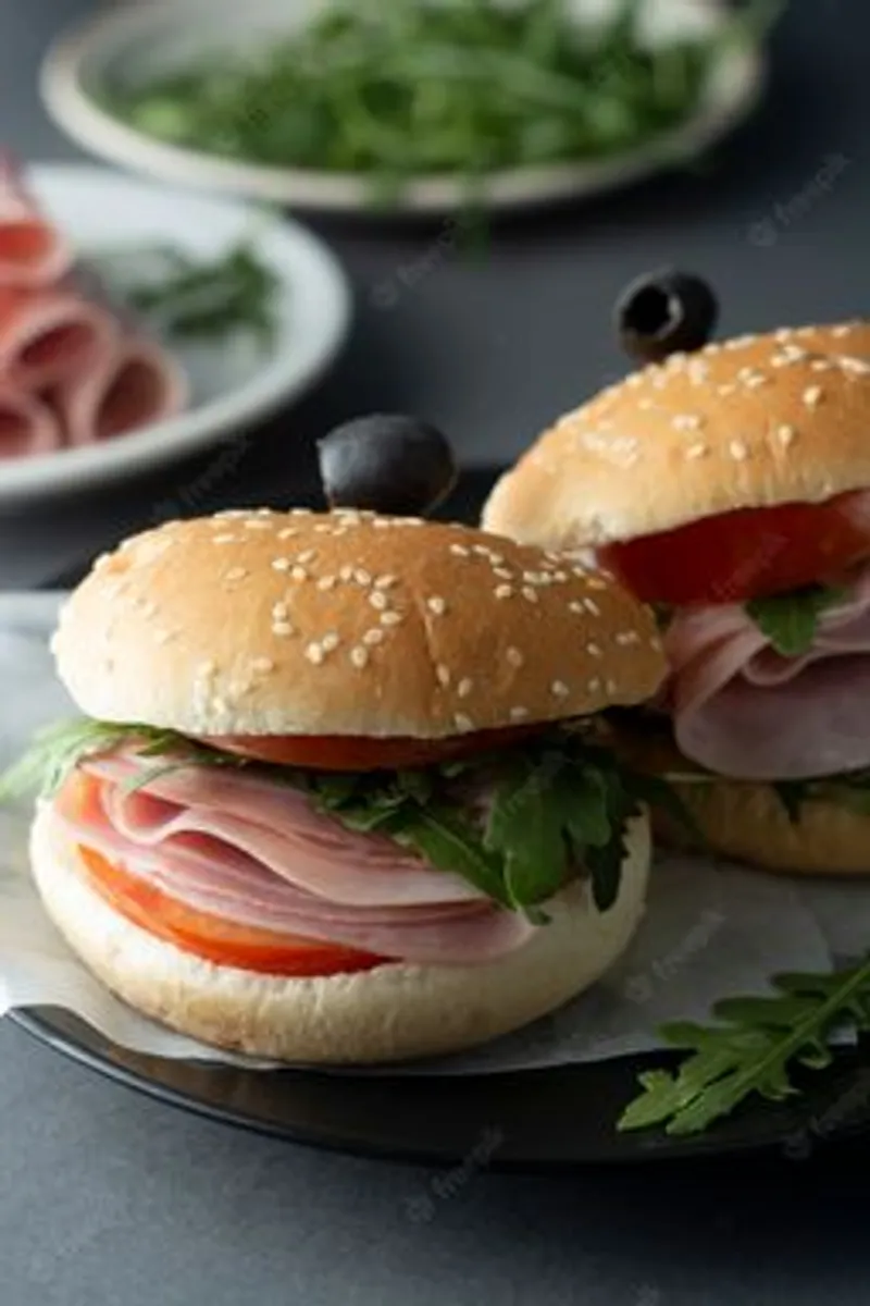Hamburguesa+Pan+Vegetales+Queso+Jamón Visking+Salsas
