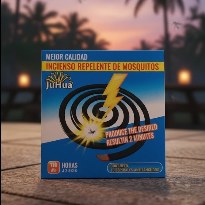 Incienso en espiral JuHua, eficaz contra mosquitos en solo 2 minutos. Cada espiral ofrece hasta 11 horas de protección, ideal para exteriores y zonas tropicales. Aroma agradable y fórmula de alta calidad. Contiene 10 espirales repelentes.