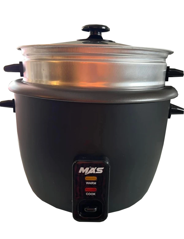 Marca: Más • Garantía: 1 mes • Olla Arrocera con tapa de vidrio, cable desmontable, tazón de aluminio con recubrimiento antiadherente, con vaporera, asas plásticas y dos funciones cocinar y calentar. • CARACTERÍSTICAS: • - Potencia: 900W • - Voltaje: 110V • - Frecuencia: 60Hz • - Peso: 2 kg