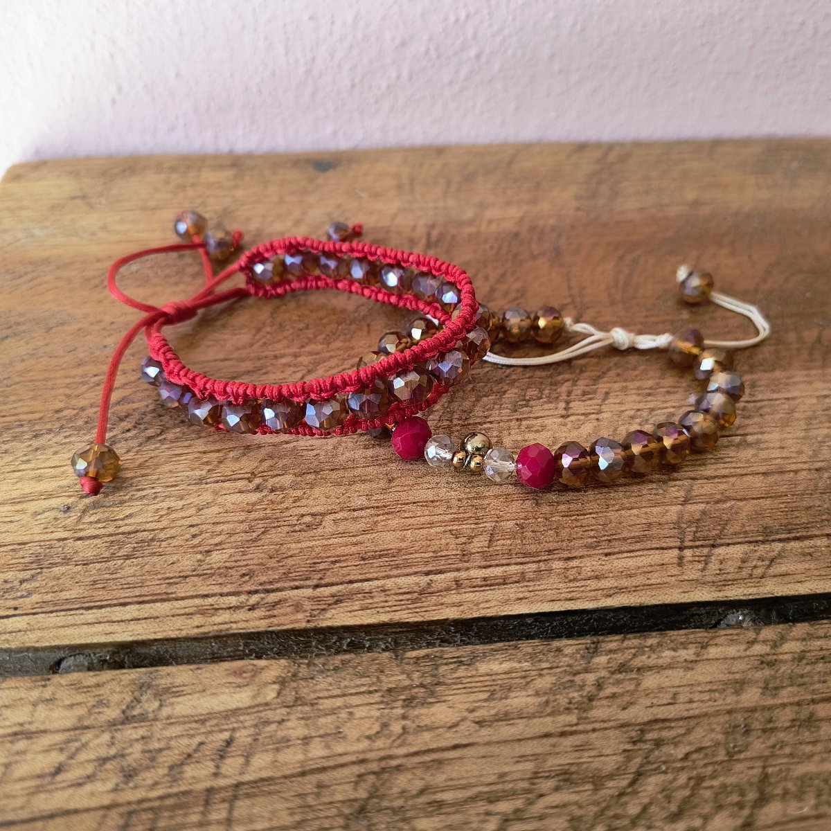 Pulseras de Swarovsky con piedras ámbar y detalles rojos