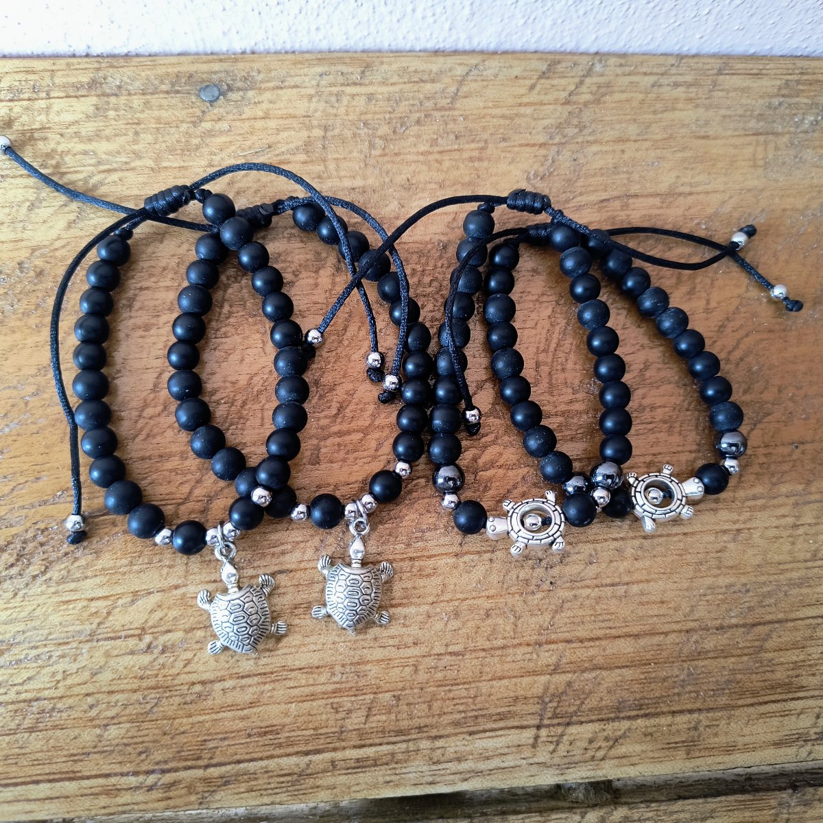 Pulseras negras de PN con adorno de acero inoxidable
