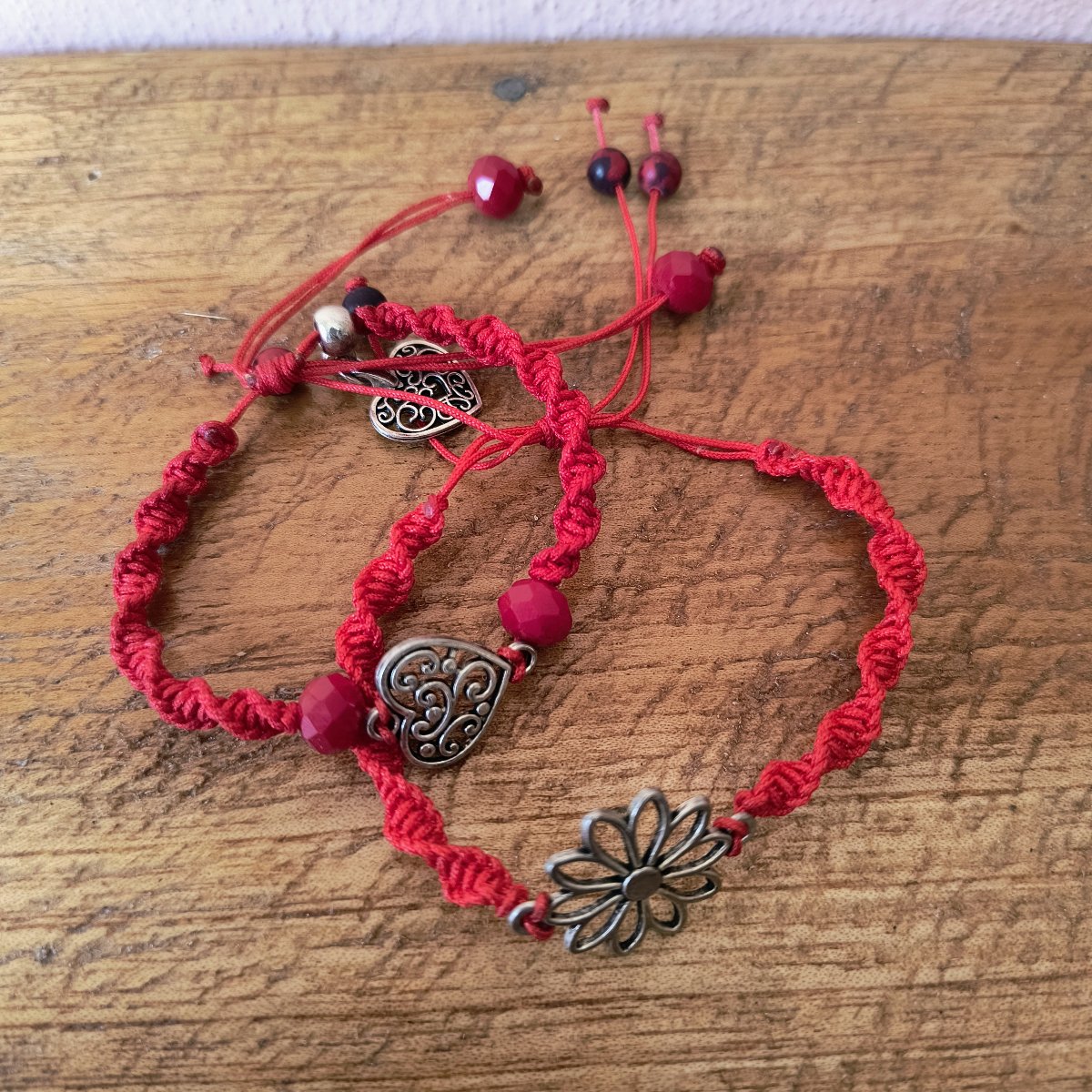 Pulseras tejidas rojas ADN con adornos de acero inoxidable
