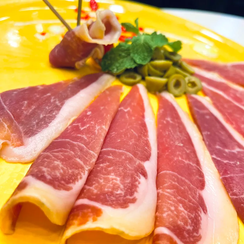 Tapa de Jamón Serrano con aceitunas