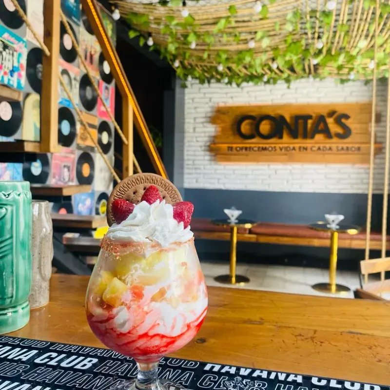 “Selección de frutas frescas finamente troceadas, servidas con una delicada capa de nata montada y acompañadas de un cremoso helado artesanal. Una fusión de sabores y texturas que deleita los sentidos.”